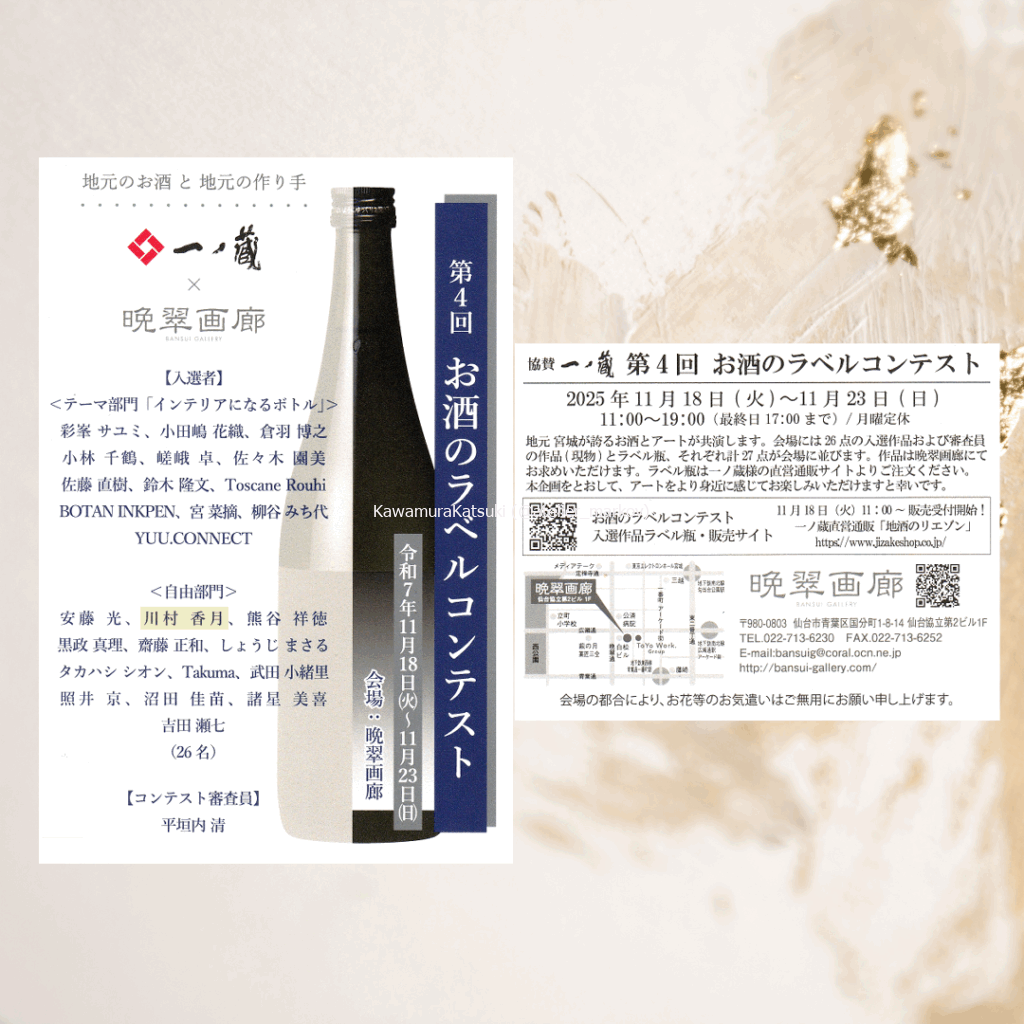 晩翠画廊様企画×一ノ蔵様協賛の≪第4回お酒のラベルコンテスト≫に入選しました。