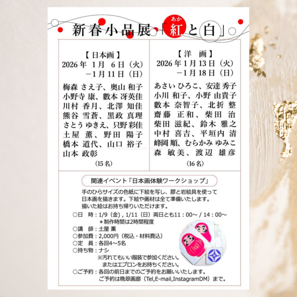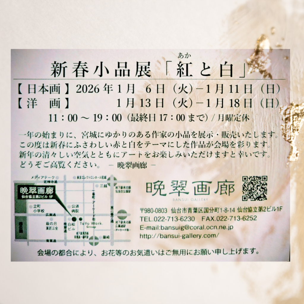 晩翠画廊にて開催される紅と白をテーマとした企画展に、日本画作品を3点出品いたします。